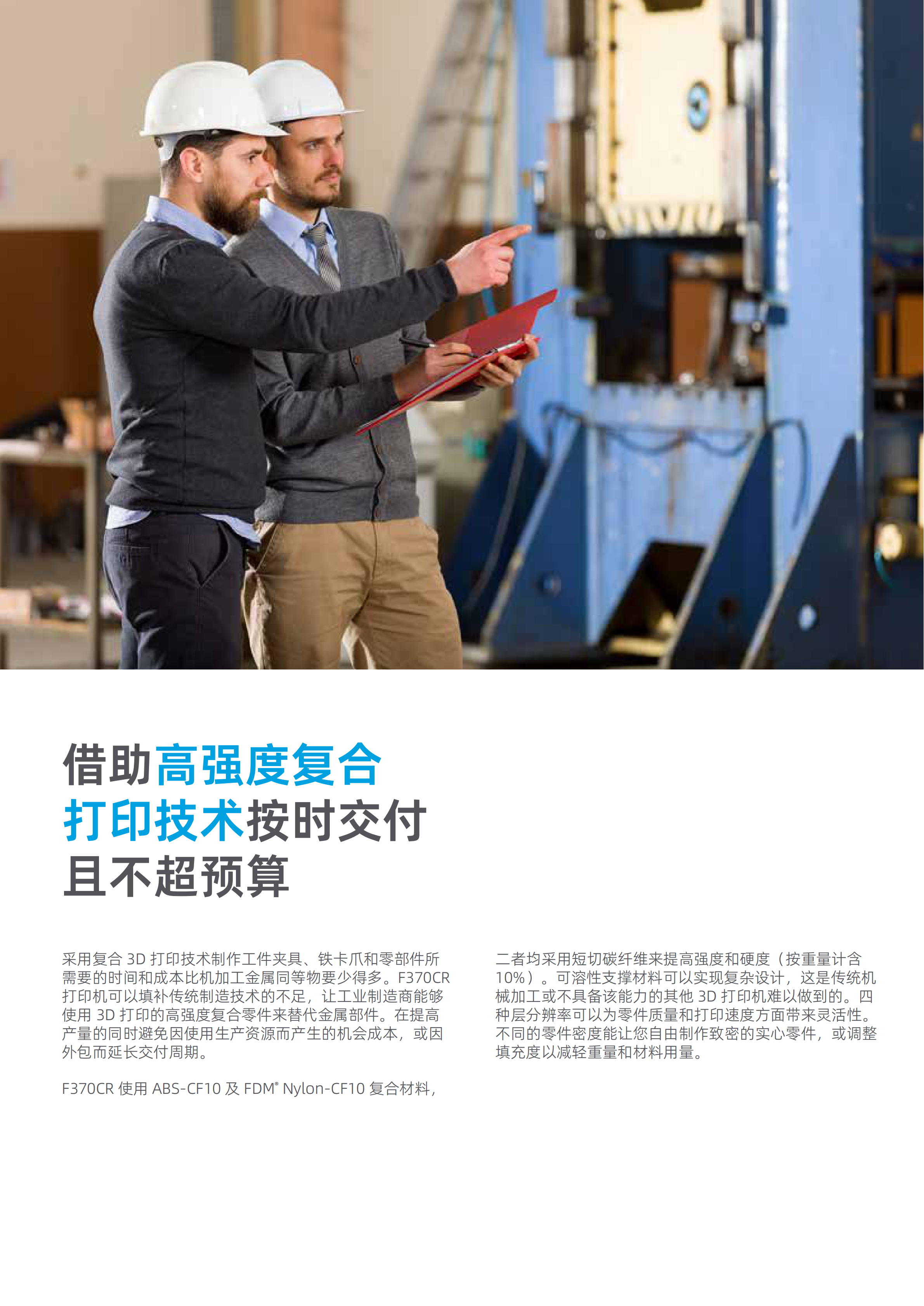 折彎機成型模具是使用 FDM? Nylon-CF10 材料 3D 打印而成, 該尼龍材料含有 10% 的短切碳纖維,由此造就了更為堅硬且堅固的復合 材料,可用于金屬成型操作。3D 打印成型模具與金屬模具相比更具優 勢,原因在于不管設計的復雜性如何,3D 打印成型模具通常可以更快地 進行制造并投入使用。它們還可作為短期生產的一種低成本替代方案, 或幫助實現全面生產。FDM Nylon-CF10 適用于 F190?CR 和 F370?CR 復合打印機。